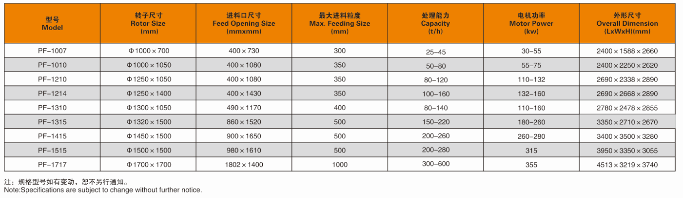 PF series impact crusher is configured for medium crushing after the coarse crusher. It can crush ores and rocks with compressive strength not exceeding 320 MPa. It has the characteristics of large processing capacity and fine discharge. The crushed product is cubic, with low needle and flake content and no internal cracks. It is the preferred equipment for producing high-quality stone in high-grade highway, water conservancy, airport, construction and other industries.